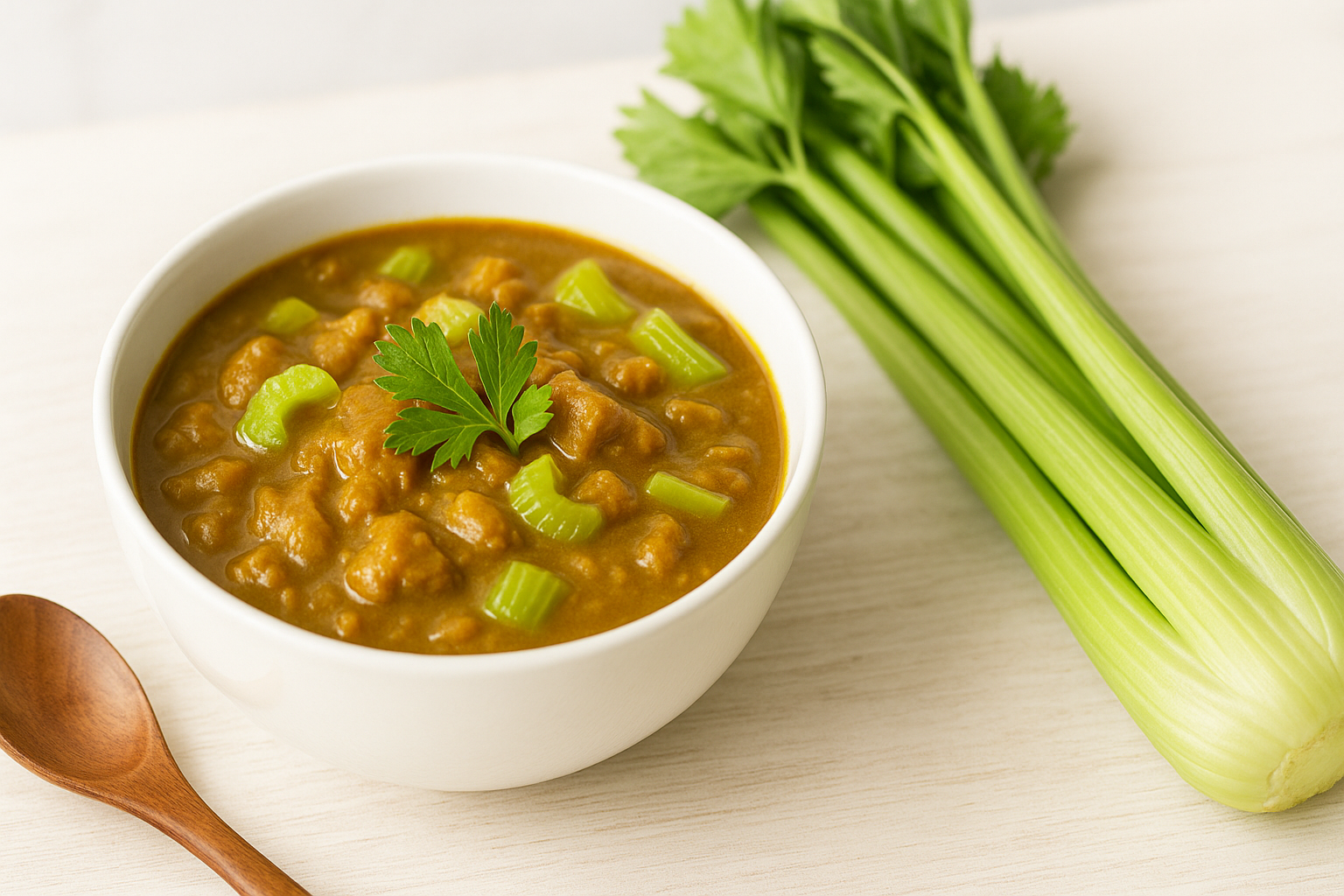 カレーの魅力は香りだけではありません。具材の食感も大切です。セロリはシャキッとした軽やかさがあり、じゃがいものほっくり感や肉のうまみと対照的。ひと皿の中に硬さ・柔らかさ・歯切れのバリエーションが生まれると、満足感が上がります。特に、スプーンでさらりと食べるタイプのカレーに薄切りのセロリを加えると、口の中が単調になりにくく、最後まで楽しく味わえます。