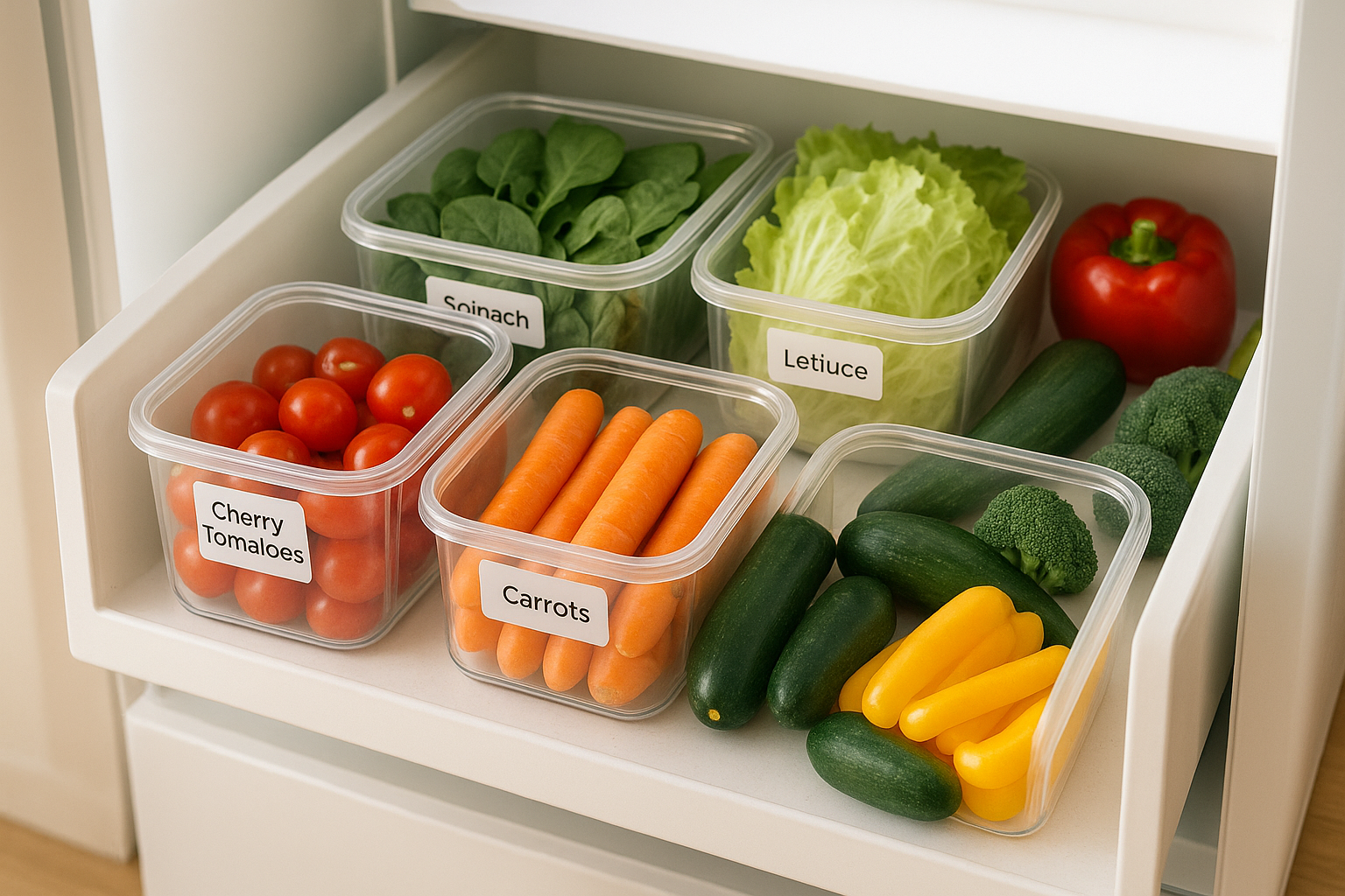 - 葉もの:上段の見やすい位置に。重ねすぎず、取り出しやすさを優先