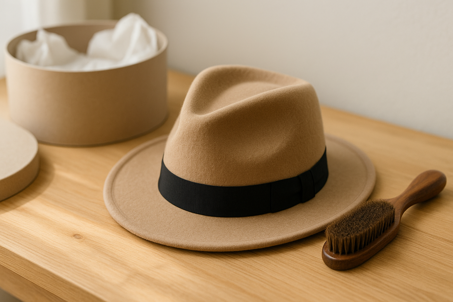- フォーマル:装飾控えめで素材感の良いハットを選び、室内での取り扱いを想定する。