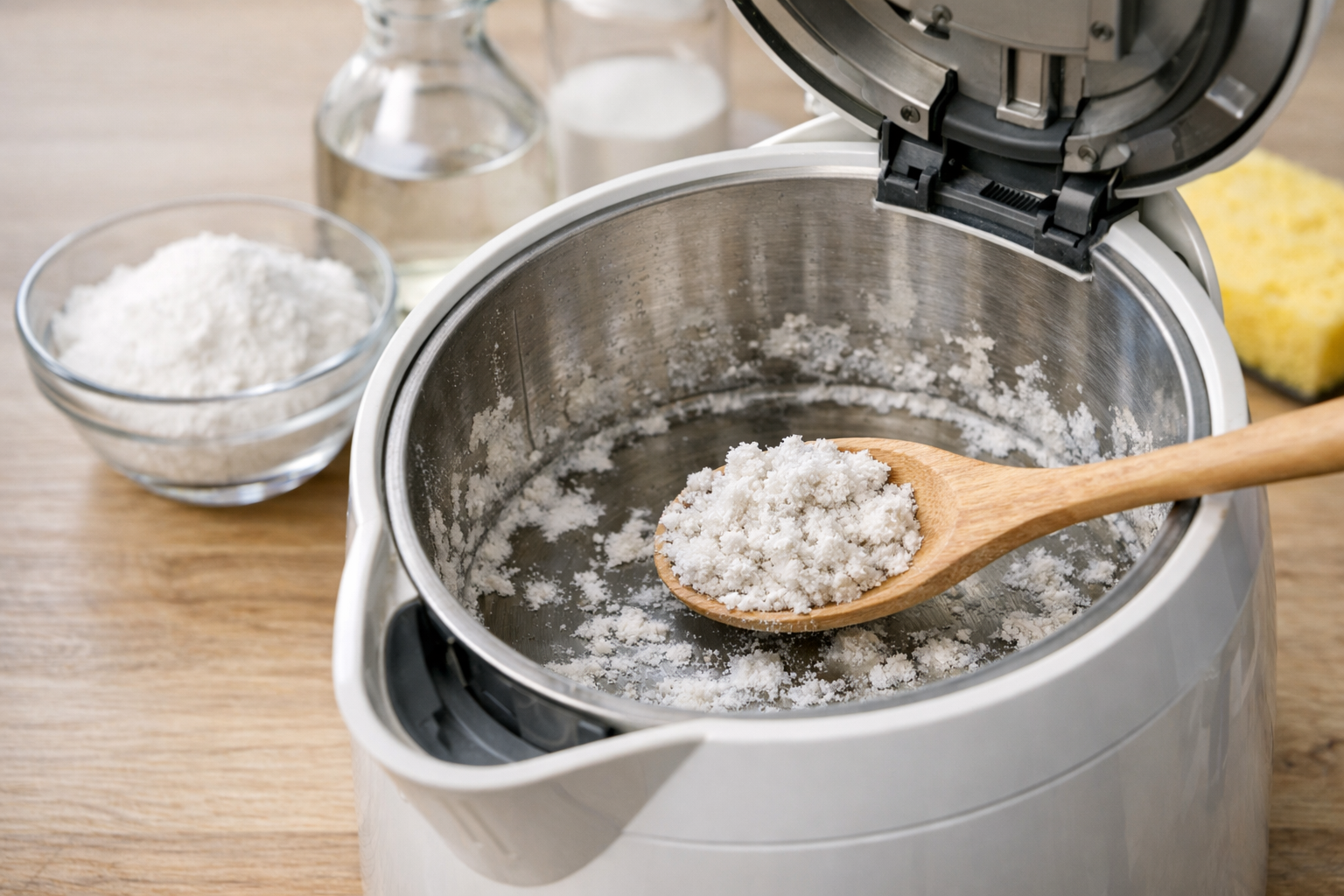 白い湯垢の主成分は、主にカルシウムやマグネシウムなどのミネラルです。水を加熱すると、これらが溶けにくい形に変わり、内釜の壁や底、注ぎ口の近くに付着していきます。