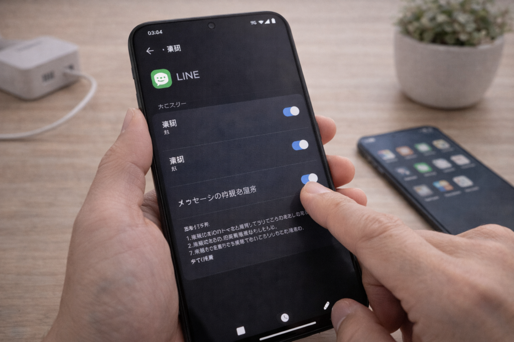 たとえば、端末側の通知設定とLINE側の通知設定の両方を確認しないと、片方だけでは表示が残ることがあります。