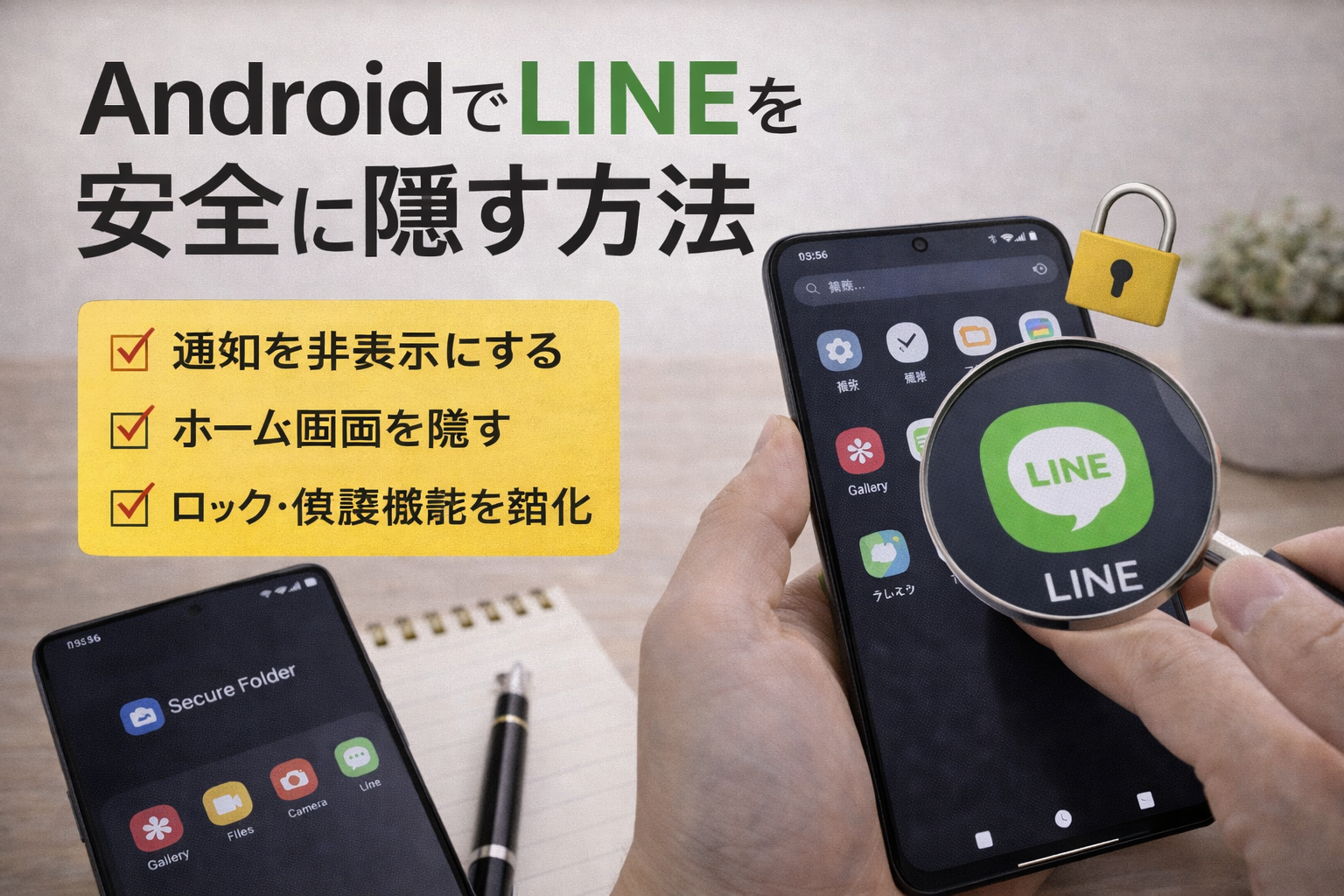 そこでこの記事では、通知の非表示、ホーム画面での見せ方、端末ロックや機種別の保護機能という3つの視点から、AndroidでLINEを安全に隠す方法をわかりやすく整理しました。