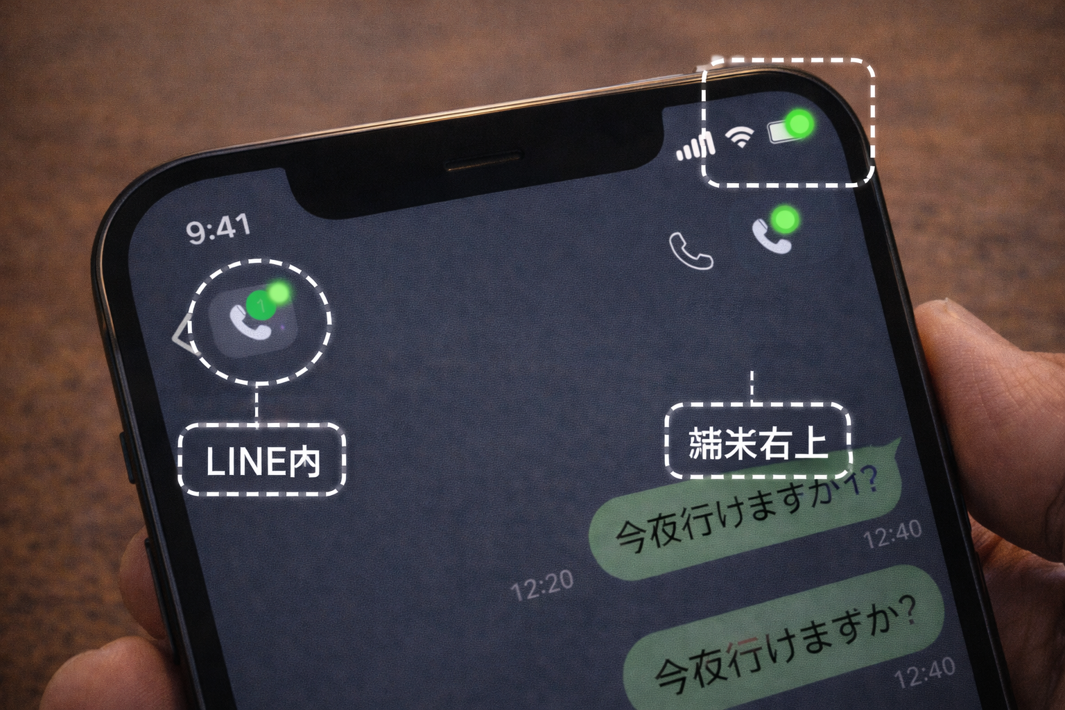 LINE通話中の緑の点との違い