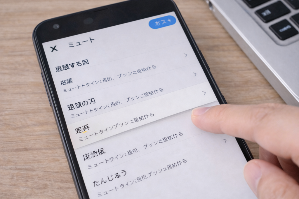 たとえば正式タイトルだけをミュートしても、略称やカタカナ表記で感想が流れてくることは少なくありません。