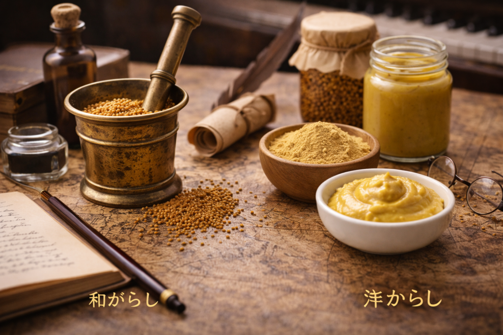 この記事では、辛子は何でできているのかという基本から、マスタードとの違い、和がらしと洋からしの考え方、歴史まで、初心者の方にもわかりやすく整理していきます。