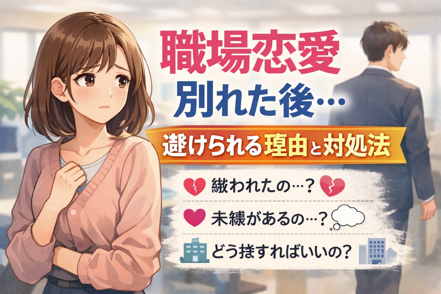 この記事では、職場恋愛で別れた後に避けられる相手の心理と、関係を悪化させない対処法をわかりやすく整理しました。