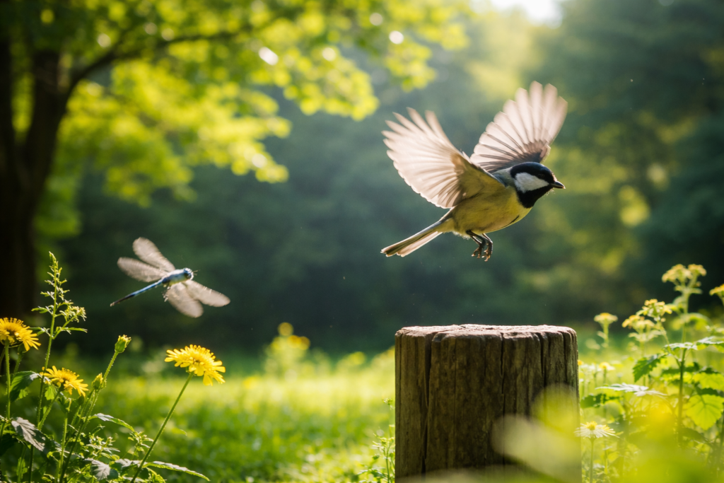 羽ばたきの速い虫や鳥、すばやく走る動物、流れ続ける雲や波。