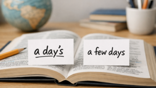 「a day's と a few days、どっちも“日”っぽいのに、いざ文章にすると迷う」——この違和感はかなり自然です。結論から言うと、a day's は「1日ぶん」をひとまとまりの単位として扱う言い方、a few days は「数日」...